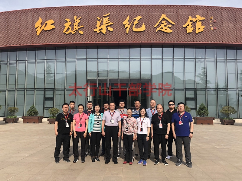 紅旗渠紀(jì)念館不僅是一座以研究、展示、傳承、收藏紅旗渠歷史的一座展館。也是我們學(xué)員感悟“自力更生、艱苦創(chuàng)業(yè)”的紅旗渠精神的一個(gè)重要窗口。學(xué)員們在展館前留念,并進(jìn)行現(xiàn)場教學(xué)。