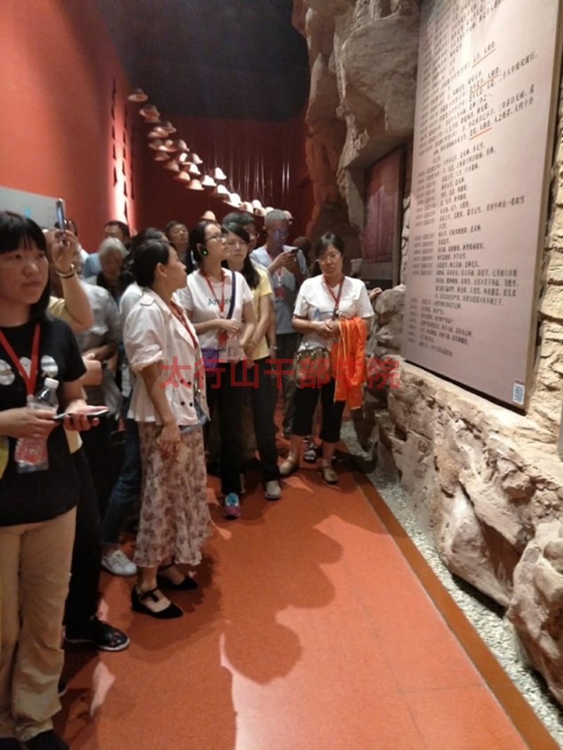 學(xué)員們?cè)诩t旗渠紀(jì)念館內(nèi)認(rèn)真聆聽老師的講解