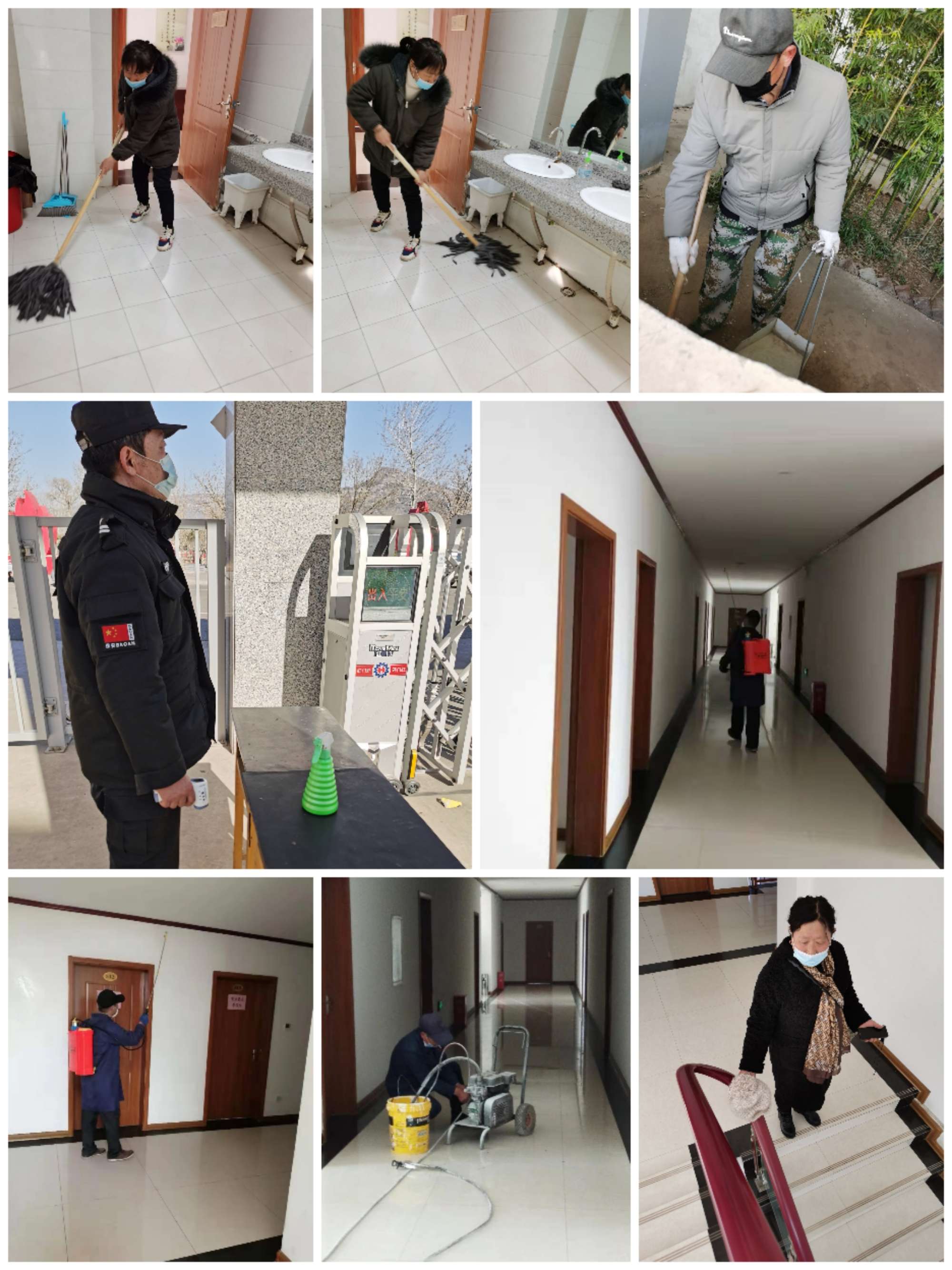 打掃、消毒,疫情防控無死角,做好學員心中的“老黃?!?。